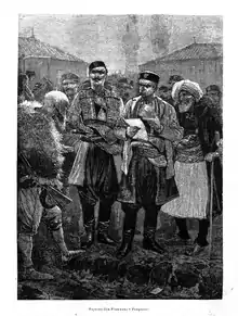Disheartened with the time Âli Pasha kept him waiting, Plamenac spoke to the Grand Vizier Mehmed Rushdi Pasha. The Grand Vizier arranged a meeting with Sultan Abdülaziz and a mixed commission was established. Vojvoda Ilija Plamenac and captain Pero Jokašev Pejović, his translator, represented Montenegro. The commission worked up to September 1866 and ended on a positive note for the Montenegrins. The Ottoman Empire agreed to retreat from the disputed village of Novo Selo, take down its fort on the Visočica near Spuž and hand over Velje Brdo and Malo Brdo with the condition that its populace continue to pay taxes to the Sanjak of Scutari.[11] The agreement was signed on 26 October 1866.[12]