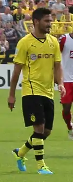 On 27 July 2013, Gündoğan scored a goal when he won the 2013 DFL-Supercup with Dortmund 4–2 against rivals Bayern Munich.[17] In August, a back injury while on international duty required surgery, which eventually ruled him out for a full year.[18] In April 2014, he signed a new contract, to keep him at the club until 2016.[19]