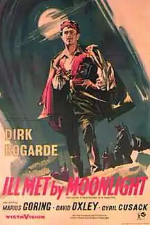 Ill Met by Moonlight (1957), released in the USA as Night Ambush (which is eleven minutes shorter than the British release), is a film by the British writer-director-producer team of Michael Powell and Emeric Pressburger, and the last movie they made together through their production company "The Archers". The film, which stars Dirk Bogarde and features Marius Goring, David Oxley, and Cyril Cusack, is based on the 1950 book Ill Met by Moonlight: The Abduction of General Kreipe by W. Stanley Moss, which is an account of events during the author's service on Crete during World War II as an agent of the Special Operations Executive (SOE). The title is a quotation from Shakespeare's A Midsummer Night's Dream, and the book features the young agents' capture and evacuation of the German general Heinrich Kreipe.