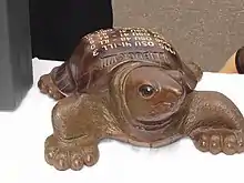 The Illibuck is a carved wooden turtle that serves as the trophy awarded to the winner of the game. Two junior honorary societies, Bucket and Dipper of Ohio State and Atius-Sachem of Illinois, are responsible for the care of the Illibuck. Originally the "trophy" was a live turtle when the tradition began in 1925, picked for its expected long life as a symbol of the anticipated long life of the rivalry. From 1919 to 1933, the Illinois–Ohio State game was the regular-season finale for both teams. Since the original turtle's death on April 14, 1926,[3] ten wooden replica Illibucks have been carved, each with the scores from games on its back.[4] The Illibuck is the second oldest trophy passed between Big Ten Conference football programs (the Little Brown Jug was created in 1903).