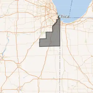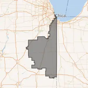 Illinois's 2nd Congressional District is adjacent to the 1st Congressional District to the north and west, the 16th Congressional District to the south, and Indiana's 1st Congressional District to the east. The district's northeast border follows Lake Michigan's shoreline for several miles. The district was created following the 1830 U.S. Census and came into existence in 1833, five months before Chicago was organized as a town. The 2nd Congressional District initially included Southeastern Illinois until 1853[5][6] and stretches of Northern Illinois until 1873.[7][8] It has been based in Chicago since 1853, and part of the southeast side since 1903. Redistricting following the 2000 U.S. Census placed a majority of the district's population outside Chicago for the first time in 100 years, and moved the district's borders beyond Cook County for the first time since 1873.