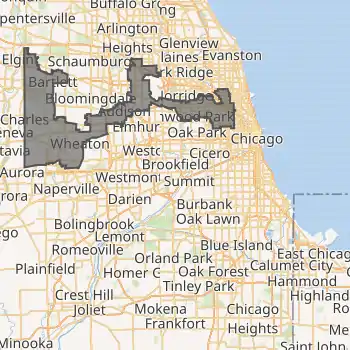 The district includes west and southwest suburbs of Chicago as far as the DuPage County border, as well as portions of the Southwest Side of the city of Chicago itself, and covers 124.5 square miles (322 km2), making it one of the 50 smallest districts in the U.S., although there are five smaller districts in Illinois. It is adjacent to the 1st District to the east and south, the 4th District to the north, and the 11th District to the west, and also borders the 6th and 7th Districts at its northwest and northeast corners respectively. The district was created following the 1830 Census and came into being in 1833, five months before Chicago was organized as a town; it initially included northern and western Illinois[4] before representing areas of east central and northwestern Illinois from 1843 to 1873.[5][6][7] The district has included part of Chicago since 1873, and part of the city's southwest side since 1895; the district has been primarily suburban since 1973.