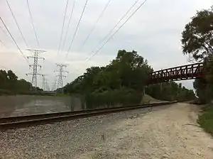On August 23, 2006, a new pedestrian bridge was lifted into place over the Des Plaines River between Maywood and Forest Park. The bridge and new approaches permit a direct crossing over the Des Plaines River, allowing the main stem of the Prairie Path to terminate further east, at the Forest Park CTA station. The bridge and approaches opened in late October 2006, after lighting and emergency call boxes were installed.[5]