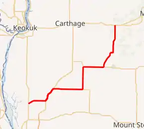 Illinois Route 61 (IL 61) is a rural state road in western Illinois that runs north and east from Illinois Route 96 in Ursa to the intersection of U.S. Route 136 2 miles (3.2 km) west of Tennessee. Illinois route 61 is 44.77 miles (72.05 km) long.[1]