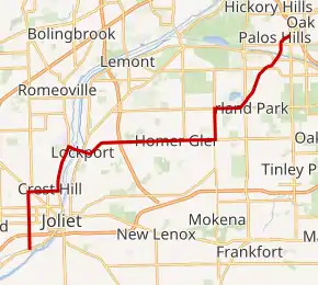 Illinois Route 7 (IL 7) is a northeast–southwest state road in northeastern Illinois. Currently, Illinois 7 runs from U.S. Route 6 at Rockdale north through Joliet, and Crest Hill into Lockport, and then east to Orland Park before terminating at Illinois Route 43 in Worth. Illinois 7 runs for about 28.06 miles (45.16 km).[1]