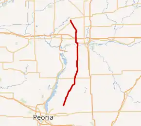 Illinois Route 89 (IL 89) is a 55.48-mile-long (89.29 km) rural, north–south state highway in central Illinois. It runs from U.S. Route 34 (US 34) in La Moille southward to IL 116 in Metamora. IL 26 and IL 89 are the main north–south roads between Interstate 39 (I-39)/US 51 and IL 29.[1]