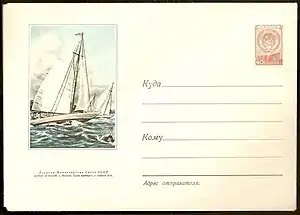 An illustrated stamped envelope (Russian: Художественный маркированный конверт) is a stamped envelope with an additional work of art on the face side of the envelope.