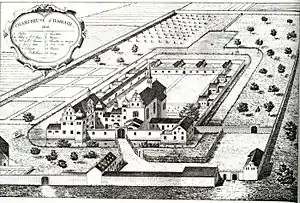 Ilmbach Charterhouse as it was before 1634, view from Maisons de l'Ordre des Chartreux vol. IV.