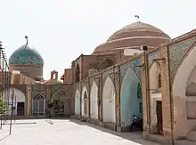The eldest part of this complex is Saiah mosque (the place which is believed to be Isaiah's tomb) and remnants of a Seljukid minaret. Nastaliq inscription on the northern wall says, that this mosque dates back to Imam Ali's era, but according to archeological researches no parts of it is older than Seljuk era. This mosque has been completely rebuilt and repaired in the Safavid era. The tiling of marble mihrab in its Shabestan is one of the parts, which belongs to the Safavid age. Its tomb, portico and yard date back to Safavid time and there are some relics in them from the famous kings like Abbas I, Safi and Sultan Husayn. The portal of Emamzadeh Esmaeil's yard is under an interesting dome from the Turkmen age. There are two gravestones in the Imamzadeh. One of the gravestones belongs to the daughter of the last Safavid king Ismail III and another one belongs to one of Islamic scholars, Hadi Mirlohi.[1][2]