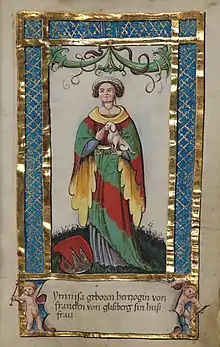 ![]() Imiza in the Weingarten Stifterbüchlein, c. 1510 | |