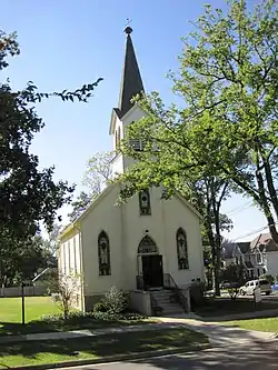 Immanuel Hall, previously known as Immanuel Evangelical Church, is a historic Late Gothic Revival church in the Carpenter Gothic style located in Hinsdale, Illinois. It was constructed in 1900 by Lutheran German immigrants for three thousand dollars. Services in the one-story building were conducted in the German language until the 1930s, when the church became affiliated with the Evangelical and Reformed Church and began services in English. The congregation moved to a new building in Burr Ridge, Illinois, in 1964. The former church in Hinsdale was then used as an office for the United Church of Christ. The church grounds were sold in 1982, and the building operated as a Montessori method preschool. In 1999, the building was again sold, and targeted for demolition by the new owners. A deal was brokered between the owners and the Hinsdale Historical Society to preserve the main church building. The remaining building was added to the National Register of Historic Places in early 2001. The building was restored from 2007 to 2008, and is now used for public events.