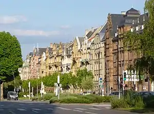 - Villa Bleyler (no. 14), Baroque-revival, punctuated by Art Nouveau, designed by Ludwig Becker, 1904–1906