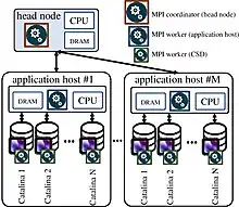 Examples of in-storage processing can be seen in fields like visualization efforts,[2] biology[3] and chemistry. This showcases how this technology allows for actions and results to be seen more efficiently than through data movement, regardless of the data being moved. The following figures (from [1]) show how CSDs can be utilized in an Apache Hadoop cluster and on a Message Passing Interface-based distributed environment.