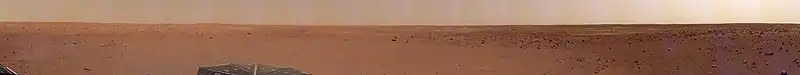 Despite the difficulties, the Viking 2 seismometer readings were used to estimate a Martian geological crust thickness between 14 and 18 km (8.7 and 11.2 mi) at the Viking 2 lander site.[41] The Viking 2 seismometer did detect vibrations from Mars winds complementing the meteorology results.[41][42] There was the aforementioned candidate for a possible marsquake, but is not particularly definitive. The wind data did prove useful in its own right, and despite the limitations of the data, widespread and large marsquakes were not detected.[43]