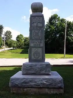 There were several other unrelated recordings of the motto. It can be encountered in some literary works of the early 19th century.[24] One of them, "Defence of Fort M'Henry", contained a version of the motto and subsequently became the national anthem of the United States. It also appeared in 1845, when D.S. Whitney published an anti-slavery hymn in The Liberator.[25][26] Odd Fellows have also used the phrase as their motto from the 1840s at least into the 1870s.[7][26][27]