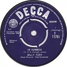 "In Summer" is a song by English singer Billy Fury, released as a single in July 1963. It peaked at number 5 on the UK Singles Chart.[2]