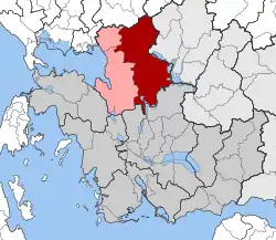 Inachos (Greek: Ίναχος) is a former municipality in Aetolia-Acarnania, West Greece, Greece. Since the 2011 local government reform it is part of the municipality Amfilochia, of which it is a municipal unit.[2] It is located in the northernmost part of Aetolia-Acarnania. Its land area is 585.382 km².[3] Its population was 4,760 at the 2011 census. Its municipal seat was the town of Neo Chalkiopoulo (pop. 569). Its largest other villages are Empesos (pop. 444), Amorgianoi (363), Thyamos (386), Perdikaki (356), and Nea Malesiada (308).