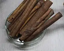 The word used by Israel's Sages to describe this condiment is קלופה = "qelufah,"[129] which has been explained by Maimonides to mean "qishr slaykha," or what others call in Arabic, "al-qerfa," meaning Chinese cinnamon (Cinnamomum cassia, syn. Cinnamomum aromaticum), or else one of the species endemic to the Indian subcontinent (Cinnamomum tamala, or Cinnamomum zeylanicum, syn. C. verum).[130] The famous Talmudic commentator, RASHI, also calls "qelufah" by the name of cinnamon.[131]