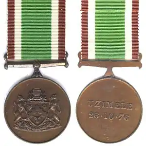 The Independence Medal was instituted by the State President of the Republic of Transkei to commemorate Independence on 26 October 1976. It was awarded to all ranks on the active strength of the Transkei Defence Force upon independence.[1][2]