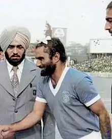 ![]() Singh playing for the India National Football team during the 60s | ||||||||||||||||