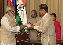 | Indian Ambassador to the Philippines Shambhu S. Kumaran | Filipino Ambassador to India Ramon S. Bagatsing Jr. |
