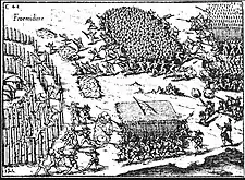 Based in Asunción, Irala had been ruling the Governorate of New Andalusia—which was in charge of the colonization of the Río de la Plata Basin—since 1538, being elected by his peers after the appointed governor Juan de Ayolas went missing in an expedition.[15] When the news of Ayolas' probable death reached the Spanish Court, explorer Álvar Núñez Cabeza de Vaca was named second adelantado[note 1] of the Governorate, arriving to Asunción on March 11, 1542, and taking power from Irala.[15][3] Upon arrival, Cabeza de Vaca "tried to establish order and discipline among the soldiers and settlers of Asunción, declaring himself protector of the [indigenous peoples]."[15] After a failed expedition looking for a route to Peru in 1542, the discontent among the Spanish settlers led to a conspiracy led by Irala against him in 1544, re-electing the latter as governor.[15] Cabeza de Vaca was arrested with the excuse of being too "permissive with the natives", and sent to Spain as a prisoner.[16] The practice of rancheadas became widespread with Irala's second government, with researcher Guillaume Candela describing them as: "without any doubt the most effective acculturation phenomenon of the conquest. Entire villages were emptied of their procreative forces, thus marking an evident trauma in the lives of the affected [indigenous people]."[10]