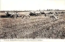 Indian Head is a town in southeast Saskatchewan, Canada, 69 kilometres (43 mi) east of Regina on the Trans-Canada Highway. It "had its beginnings in 1882 as the first settlers, mainly of Scottish origin, pushed into the area in advance of the railroad, most traveling by ox-cart from Brandon."[7] "Indian" refers to Aboriginal Canadians. The town is known for its federally operated experimental farm and tree nursery, which has produced and distributed seedlings for shelter belts since 1901. For many years the program was run by the Prairie Farm Rehabilitation Administration (PFRA).
