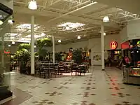 Indian Mound Mall opened its doors on October 23, 1986, becoming the second[2] indoor shopping mall in Licking County. The mall's first logo consisted of a circle with lines, and a feather that represents the native American Indian, which has "Indian Mound Mall" written on it. The original anchor stores consisted of the following: Elder-Beerman, JCPenney, Lazarus, and Hills. Crown Cinema was added to the rear of the mall in 1988.[3] A fountain was originally located in the center of the mall from 1986 to 1997. The same year the fountain was removed, the mall added Sears to replace a freestanding store nearby, and the Crown Theaters expanded from six screens to eleven screens, which became a Hollywood Theater. In 2016, AMC Theaters bought the Hollywood Theater.[4] In 1998, Elder-Beerman was expanded, and later closed on August 26, 2018, adding 20,000 square feet (1,900 m2).[5]