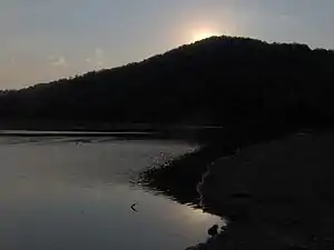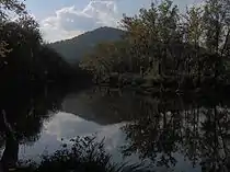 Elk Creek splits Indian Mountain State Park into eastern and western halves. The western half is dominated by the 6-acre (0.024 km2) Indian Mountain Lake, which spans the base of Indian Mountain and forms the southern and western boundary of the park's campground. Ballard Lake, a large pond slightly smaller than Indian Mountain Lake, dominates the park's eastern section. Several smaller ponds are scattered along the park's northern and southern boundaries. Elk Creek, which drains the park, is part of the Cumberland River watershed.