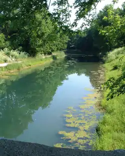 Again the southern part of the state objected, instead favoring a canal in the Whitewater Valley, then the most populated part of the state. Governor James B. Ray objected to canals as a total waste of money, and insisted on the creation of railroads instead; he threatened a veto of any canal project.[8] Because the state refused to help fund the project, it had to rely on the federal funds and the income the commission collected from selling lands adjacent to the proposed canal route. Slowly enough funds were collected and construction began on the route in 1831.[9][10]