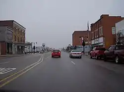 SR 26 then enters Hartford City on Water Street before curving onto Washington Street, prior to an intersection with SR 3. East of SR 3, Washington Street enters the Hartford City Courthouse Square Historic District and passes on the south side of the Blackford County Courthouse. SR 26 leaves the historic district and turns south on Mill Street for one block, before turning east onto Water Street and crossing a Norfolk Southern Railroad track. The highway leaves Hartford City and enters rural Blackford County, before coming to an intersection with the north end of SR 167 at the Blackford–Jay county line. SR 26 joins SR 1 for a short distance heading south, before SR 26 turns east towards Portland. The road joins SR 67 before entering Portland. The two state roads enter Portland on Votaw Street, passing through mostly commercial lots. At US 27 (Meridian Street) SR 67 turns north concurrent with US 27, while SR 26 turns south concurrent with US 27. Meridian Street heads south passing through the Portland Commercial Historic District, about a block east of the Jay County Courthouse. SR 26 turns east on Water Street, while US 27 continues south across the Salamonie River. Water Street leaves the historic district and passes through a residential part of town, before leaving Portland. As the road leaves Portland it crosses over the Salamonie River. East of Portland SR 26 parallels the Salamonie River, before the highway crosses over the river again. The road passes through agricultural land, before the Ohio state lines the road curves towards the southeast. SR 26 ends at the Ohio–Indiana border, just outside of Fort Recovery, the roadway continues east into Ohio as State Route 119.[1][3]