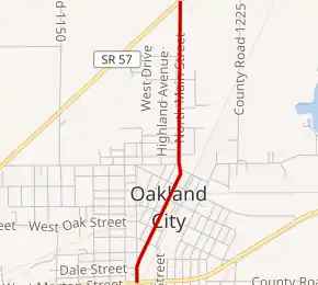 State Road 357 in the U.S. state of Indiana is a very short north–south state highway in Gibson County, entirely within the city of Oakland City.