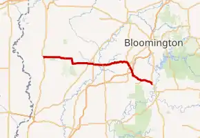 | Greene | Stockton Township | 12.55 | 20.20 | Northern end of SR 59 concurrency | |