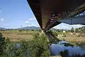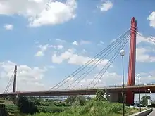 - Type of bridge: highway, earth anchored cable-stayed bridge with central towers and a steel stiffened plate girder composed of 2 trapezoidal box-girders connected by a cross-beams and horizontal bracings.