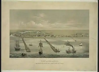 From its founding in 1846, Indianola served as a major port, and before the 1875 storm was second only to Galveston, Texas as Texas' primary port.[12] Charles Morgan established Indianola as a port of call for his gulf coast steamship line in 1849.[13]