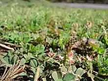 Indigofera hendecaphylla, the creeping indigo or trailing indigo, is a species of flowering plant in the family Fabaceae. It is native to the Old World Tropics and Subtropics, and has been introduced to various locales, including Japan and Australia.[1] It was widely introduced as a forage plant when it was thought to be conspecific with Indigofera spicata, and then shown to be toxic to nearly all livestock, with some uncertainty as to which species was tested.[2]