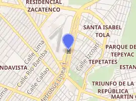 Indios Verdes is a metro station along Insurgentes Norte Avenue, located in the colonia (Mexican Spanish for "neighborhoods") of Residencial Zacatenco and Santa Isabel Tola, in the Gustavo A. Madero borough, in northern Mexico City.[2] Within the system, Deportivo 18 de Marzo is the next station.[3] The station facilities are partially accessible for the disabled as there are tactile pavings and braille signage plates.[3]