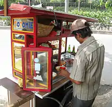 While most of Indonesian grocery products and food served in mid to upperscale eating establishments maintain food hygiene standard ranges from good to acceptable — regulated and supervised by Badan Pengawasan Obat dan Makanan (Indonesian Food and Drug Administration) — some warung traditional foodstalls and street vendors might have poor hygiene. The tropical microbes also might contribute to food poisoning cases mostly gastroenteritis, especially among foreigners during their stay in Indonesia.[64] It is advisable to drink bottled or boiled drinking water, or choose cooked hot food instead of uncooked room temperatured ones sold by street vendors. For example, when consuming food sold by street vendors, consuming hot cooked mie ayam or soto is much safer than having gado-gado or fruit rujak.