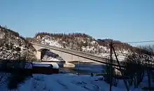 The Indre Sunnan Bridge (Norwegian: Indre Sunnan bru) is a cantilever bridge in the municipality of Bodø in Nordland county, Norway. It crosses a strait between the island of Straumøya and the village of Tuv on the mainland. The Saltstraumen strait and its famous maelstrom lie just a short distance to the northeast. The bridge is 360 metres (1,180 ft) long and the main span is 165 metres (541 ft).[1]