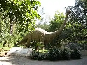 Dinosaurs that are on display include Tyrannosaurus rex, Megalosaurus, Titanosaurus, Barapasaurus, Brachiosaurus, Antarctosaurus, Stegosaurus and Iguanodon.[1] The park displays life-size models of the dinosaurs along with details of each period in which they existed and characteristics of the animals.[1]