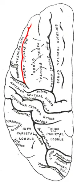 The inferior frontal sulcus is a sulcus between the middle frontal gyrus and the inferior frontal gyrus.