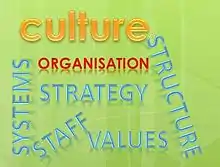 Information Culture is the part of organizational culture where evaluation and attitudes towards information depend on the situation in which the organization works. In an organization everyone has different attitudes, but the information profile must be explained, so the importance of information should be realized by executives. The Information Culture is also about formal information systems (technology), common knowledge, individual information systems (attitudes), and information ethics.[8] Information Culture does not include written or conscious behavior and what seemingly happening in the organization. Information Culture is affected by the behaviors of internal factors of organization more than external factors, which comes in form of Information Culture, the attitudes and the traditions. Information Culture deals with information, information channels, the attitudes, the use and ability to forward or gather information with the environmental circumstances effectively. Knowledge base of any organization can be viewed according to Nonaka's[9] theories about the organizational knowledge production and Cronin & Davenport's[8] theories about the social intelligence. According to these theories it is important to look at the organization Information Culture how the user uses the information. Cultural differences need to be understood before information technology developed for an organization in one country can be effectively implemented in an organization in another country.[10]