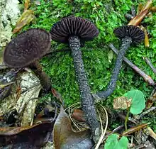 Inocybe tahquamenonensis is an inedible species of agaric fungus in the family Inocybaceae.[1] Found in the United States, it was formally described in 1954 by mycologist Daniel E. Stuntz.[2] The fruit bodies have bell-shaped to convex to flattened caps measuring 1.2–3 cm (0.5–1.2 in) in diameter. Its color is dark purplish brown to reddish- or blackish-brown, with reddish-purple flesh. The gills are attached to the stipe and are somewhat distantly spaced. They are initially reddish brown before turning to chocolate brown, sometimes developing whitish edges. The spore print is brown; spores measure 6–8.5 by 5–6 µm. Fruit bodies grow singly, scattered, or in group under deciduous trees.[3]