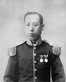Inoue Masaoto (井上 正巳) (February 10, 1856 – September 14, 1921) was a Japanese daimyō of the Edo period, who served as the last lord of the Shimotsuma Domain. His court title was Iyo no kami. Under his leadership, Shimotsuma fought on the side of Aizu during the Boshin War.