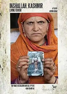 Inshallah, Kashmir (also known as Inshallah, Kashmir: Living Terror) is a 2012 documentary film directed, produced and written by Ashvin Kumar. It is the story of contemporary Kashmir. A series of counterpointed testimonies, the heartbreaking coming-of-age of ordinary people; warped and brutalised by two decades of militancy and its terrible response. Tehelka says, "Although the camera and narrator usually provide the impartial eye in a documentary, stitching the story together, in Inshallah, Kashmir it is the Kashmiris who weave their deadpan narrative into a cohesive picture. Their matter-of-fact monotone says more than an entire valley of screams could."[1]