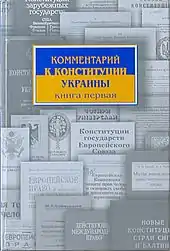 In 2000, in the Parliament Publishing House of the Supreme Council (Verkhovna Rada) of Ukraine under the auspices of the Institute appeared in print the first,[17] and in 2003 - the second edition of the book "Commentary on the Constitution of Ukraine (Book one)", which was recommended by the Ministry of Education and Science of Ukraine as a textbook for students of higher educational institutions of Ukraine (Letter number 14 / 182-1270 from 16.07.2003). In the 2nd edition of the book the introductory speech to the readers was made by the second President of Ukraine Leonid Kuchma. With the purpose of legal education the book was donated to the libraries of Kiev schools (19.11.2003), higher educational institutions (19.11.2004)[18] and the central governmental bodies of Ukraine.[11][12][13][14]