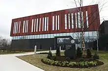 The renovation involved demolishing Abert Hall and Emory Hall, constructing a new Centrum building that connected and integrated the remaining three buildings, and replacing the facades of the existing buildings with a modern design of glass and red-hued metal panels.[1][9] The interiors were remodeled into open, light-filled workspaces. Additionally, 20 acres of paved surface parking lot were removed and replaced with a new six-story garage.[10][11] The renovation cost 60% less than a completely new construction would have.[12]