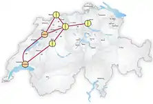 Swiss InterCity lines have been numbered by analogy with the Swiss motorway network since the timetable change of December 2018.[2][3]