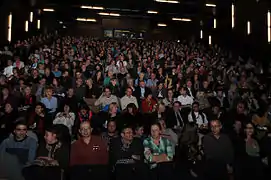 Festival goers at the Stadthaus in Mannheim
