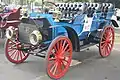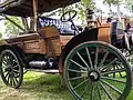 Supplied with a pair of bench seats to carry four passengers, it was powered by an engine set beneath the car's body, a two-cylinder, horizontally opposed, air cooled design that produced 18-20 horsepower. It had two forward gears and one reverse gear with a chain-drive system to the large "high-wheel", wagon-style, rubber-shod wheels at the back.[2] Its high wheels and wide stance gave it the stability and ground clearance to cope with poor roads. Accessories such as a canvas top were optional.[1]
